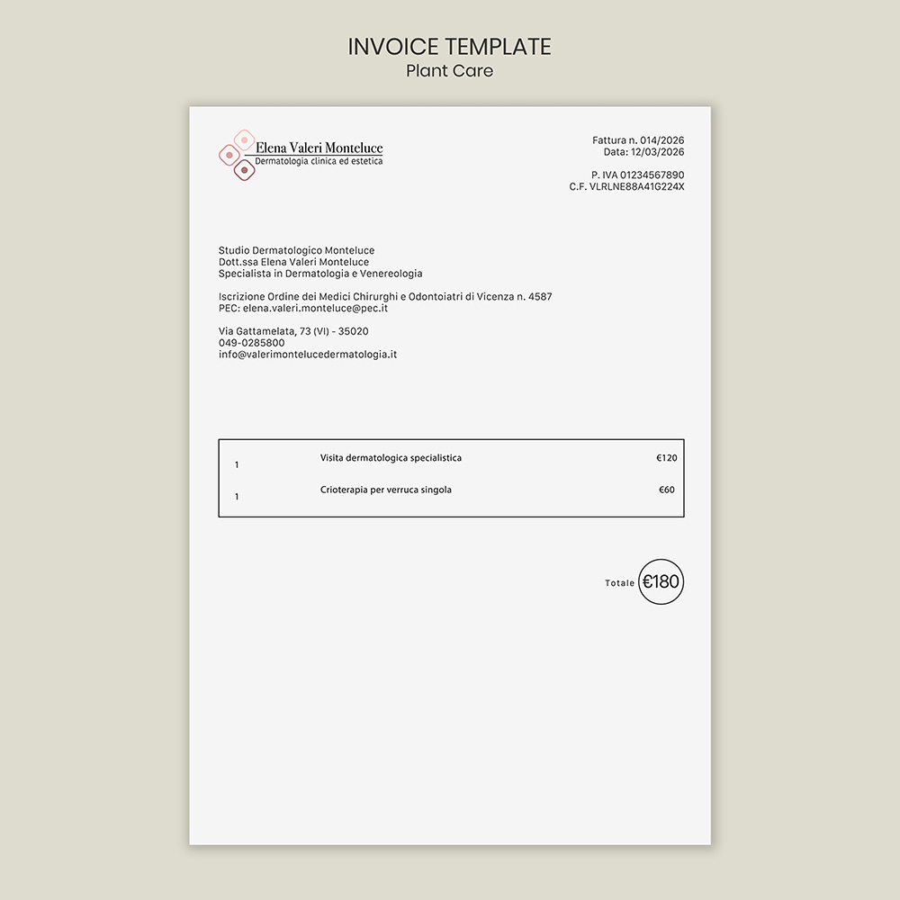 Giovane dermatologa inaugura il suo primo studio con un approccio clinico contemporaneo, richiedendo unโidentitร visiva che comunichi competenza e fiducia.